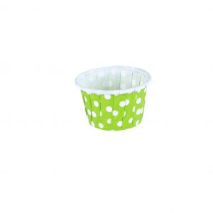 Used primarily to bake cupcakes or muffins, by preventing the batter from sticking to the sides of a pan, this small cupcake liner ensures that your creation looks and tastes delicious, and is consistent in size, shape, and style. It is round shaped and of single portion size. Once you prepare your batter, you can pour it into this liner, bake it up to 220°C, allow it to cool and enjoy eating it. It’s well known for its 3 P’s: Prepare, Preserve and Present, this means you can use this liner to prepare your cupcake, preserve or store it for later consumption and present it as it is without worrying about transferring it to another vessel.It is small in size, with a cute green colored polka dot print, which is a single-dose baking mold made of paper with a rolled edge. The pure cellulose paper is resistant to food fats and can withstand both freezing and baking.It saves you time, effort and is recyclable.